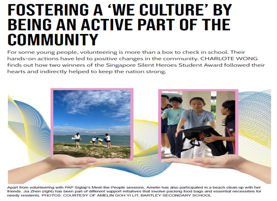We are delighted to announce that three students from Bartley Secondary School, Pang Jia Zhen, Eryqa Hunsa, and Ellie Lee, have received recognition at the esteemed Singapore Silent Heroes (SSH) Student Award 2025. The SSH Student Award honours pupils for their selfless contributions to society. By celebrating these acts of compassion, the award seeks to encourage others to make positive contributions, fostering a spirit of giving that will benefit future generations. These students demonstrate through their empathy and bravery that genuine leadership lies not in seeking attention, but in creating meaningful change in others' lives. As Jia Zhen, who is featured in the Straits Times IN edition above, says, volunteerism “builds community spirit and fosters a culture of care and responsibility”. Let’s celebrate their spirit of service and the positive impact they have created in our community. They are true examples of what it means to be Disciplined Learners, Principled Leaders, and Compassionate Contributors.